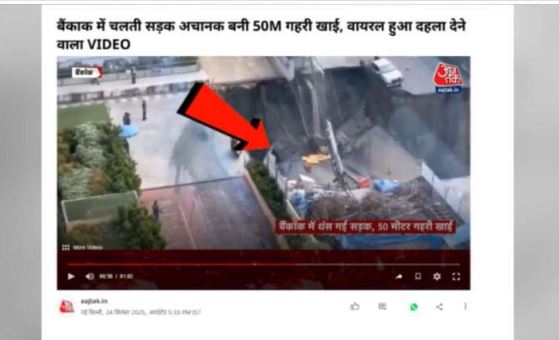 • एक वीडियो जिसमें सड़क अचानक धंस जाती है, पानी भरने लगता है और पास की एक इमारत गिर जाती है।