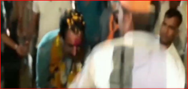#WATCH: A man greets BJP MLA and candidate Dilip Shekhawat with