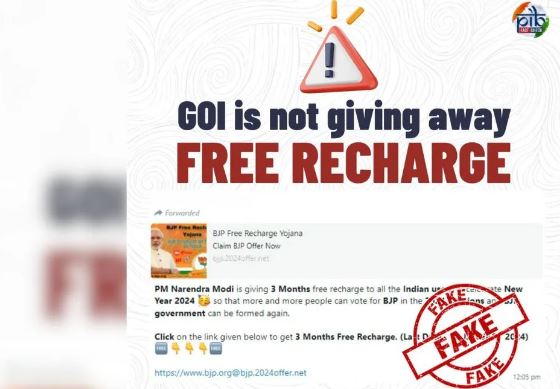 हाल के दिनों में सोशल मीडिया पर एक मैसेज ज़बरदस्त तरीक़े से वायरल हो रहा है। खासकर WhatsApp पर एक फॉरवर्डेड मैसेज में यह दावा किया जा रहा है कि प्रधानमंत्री नरेंद्र मोदी के नेतृत्व वाली भारत सरकार देश के सभी मोबाइल उपयोगकर्ताओं को तीन महीने तक फ्री मोबाइल रिचार्ज दे रही है।
