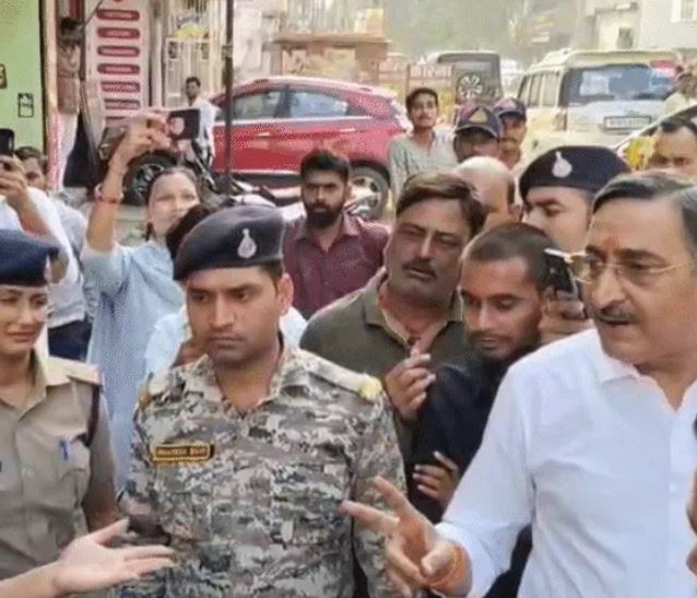 मुंबई, 14 अक्टूबर, (न्यूज़ हेल्पलाइन)। ग्वालियर में एमपी हाईकोर्ट की बेंच परिसर में डॉ भीमराव अंबेडकर की मूर्ति लगाने को लेकर विवाद जारी है। कलेक्टर ने किसी भी तरह के कार्यक्रम, आयोजन और भीड़ एकत्र करने पर रोक लगा रखी है। विवाद के बीच एडवोकेट अनिल मिश्रा के घर के पास पुलिस ने कड़ी सुरक्षा व्यवस्था की। मंगलवार को मिश्रा के समर्थक सिद्धेश्वर मंदिर पर सुंदरकांड पाठ करना चाहते थे, लेकिन मंदिर बंद मिलने पर वे नाराज हो गए। सड़कों पर ही सुंदरकांड के लिए टेंट बुला लिया गया, जिसे सीएसपी विश्वविद्यालय हिना खान ने वहां से हटा दिया। इसके बाद समर्थकों ने हिना पर सनातनी विरोधी होने का आरोप लगाया और 'जय श्रीराम' के जयकारे लगाने शुरू किए। इस दौरान हिना ने भी जोर-जोर से जयकारे लगाए और कहा कि यह मैं भी कर सकती हूं।